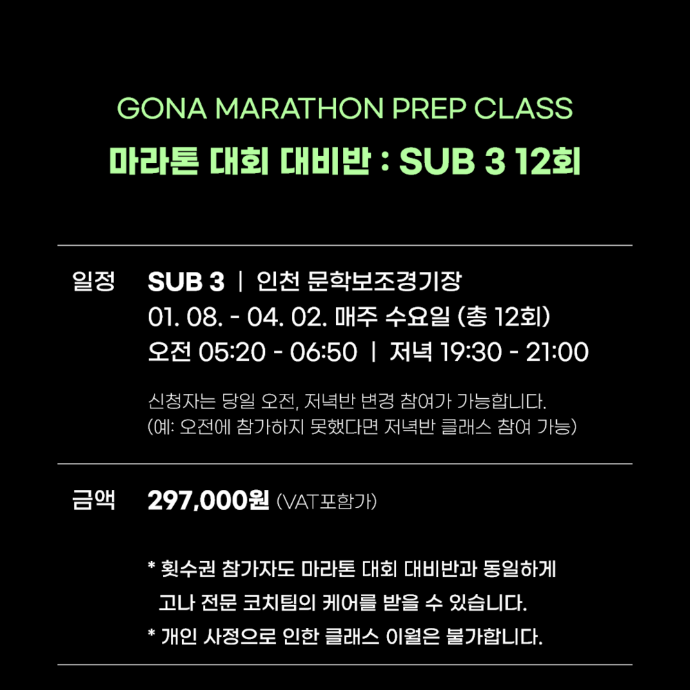 25년 마라톤 대회 대비반 SUB3 문학클래스