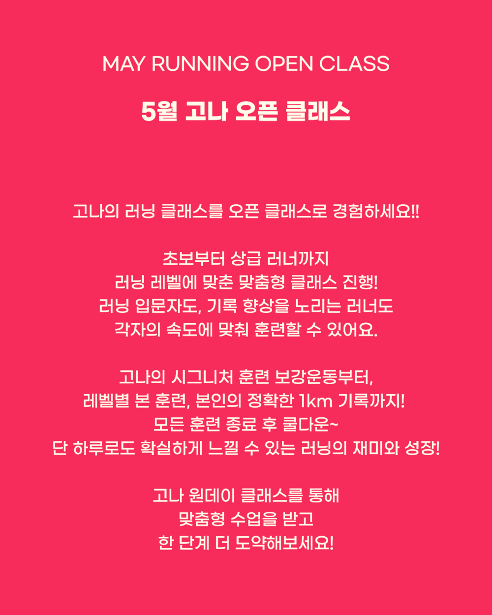 고나의 러닝 클래스를 오픈 클래스로 경험하세요!!