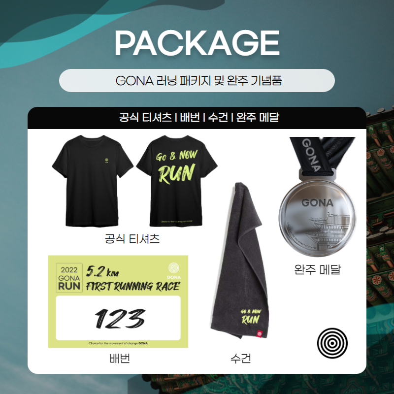 ‣ GONA 공식 티셔츠, GONA 수건, 배번