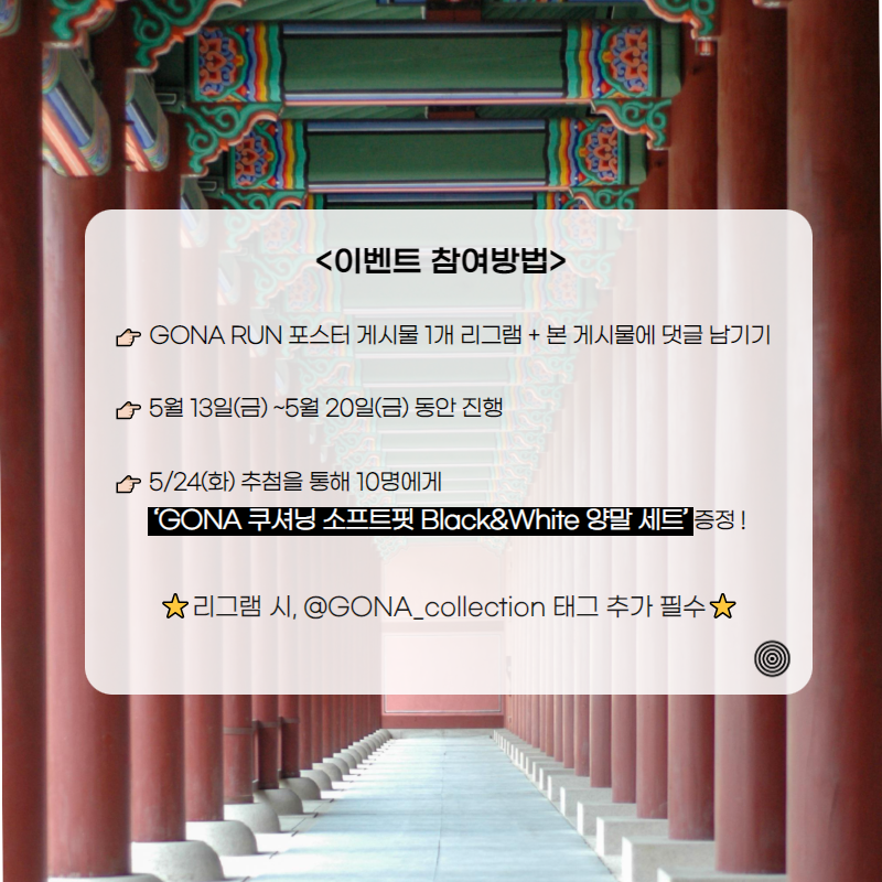 자세한 사항은 GONA 인스타그램 본 계정 (@GONA_colleciton) 팔로우 !