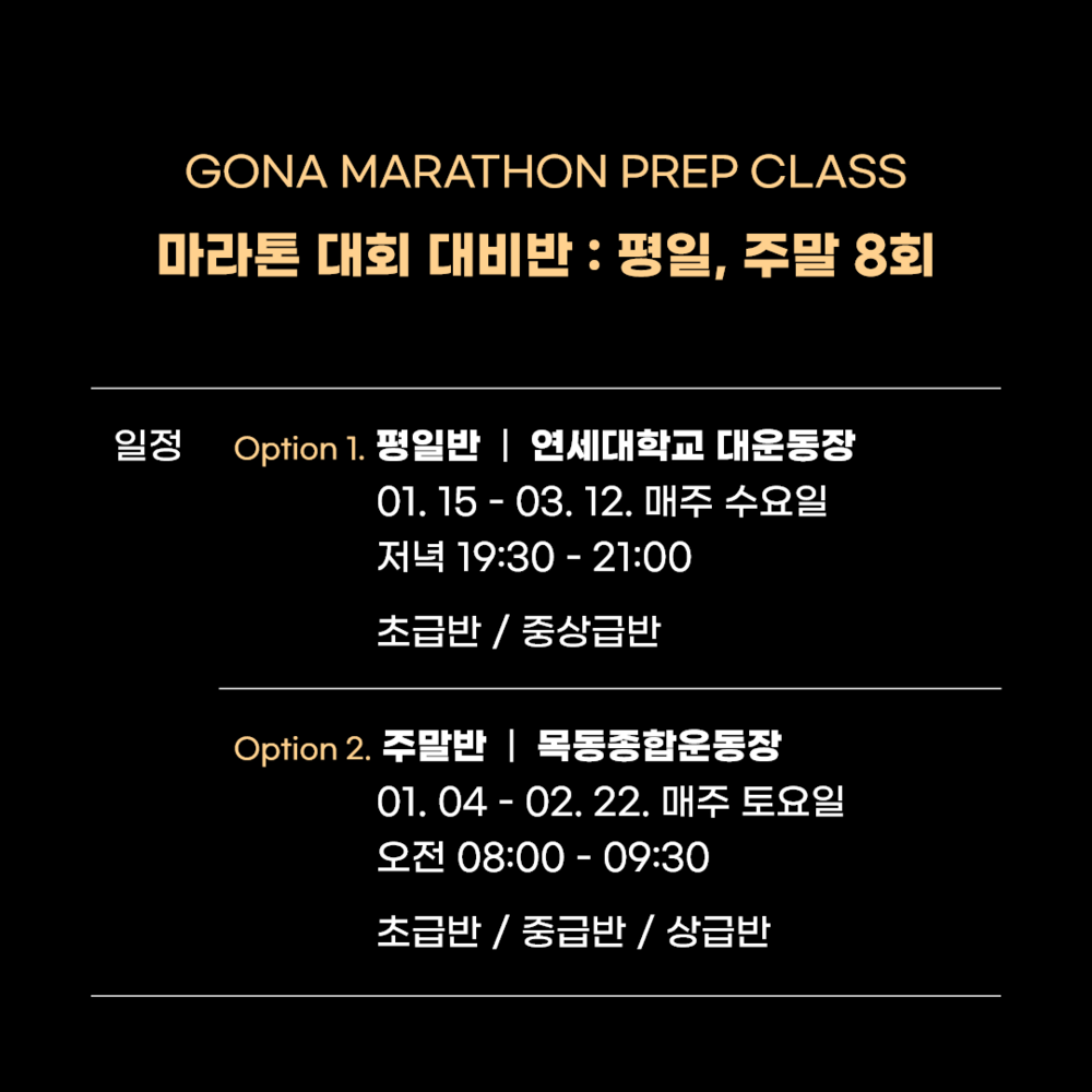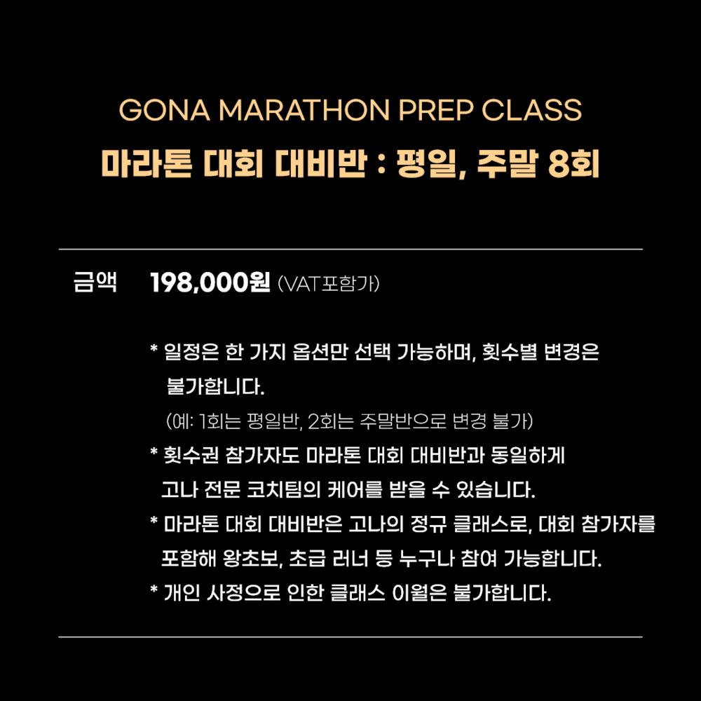 고나 마라톤 대비반_ 평일/주말반 8회