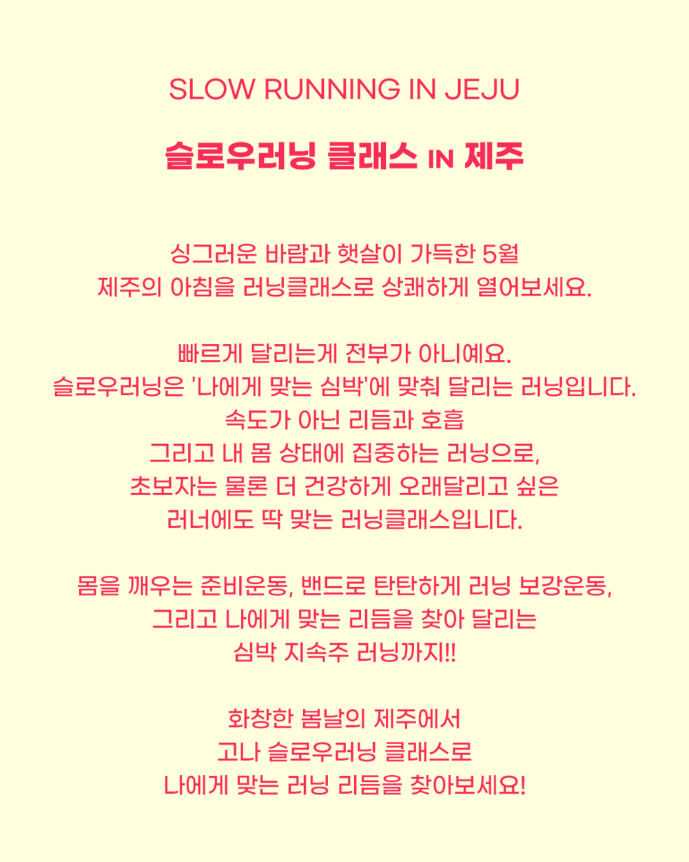 제주의 아침을 러닝클래스로 상쾌하게 열어보세요.