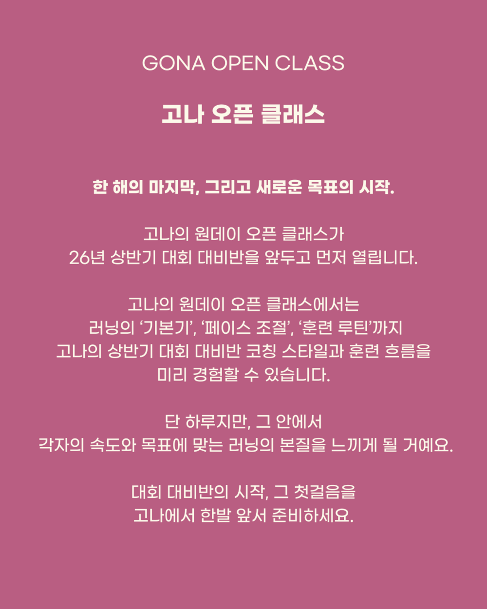 고나의 상반기 대회 대비반 코칭 스타일과 훈련 흐름을 미리 경험할 수 있습니다.