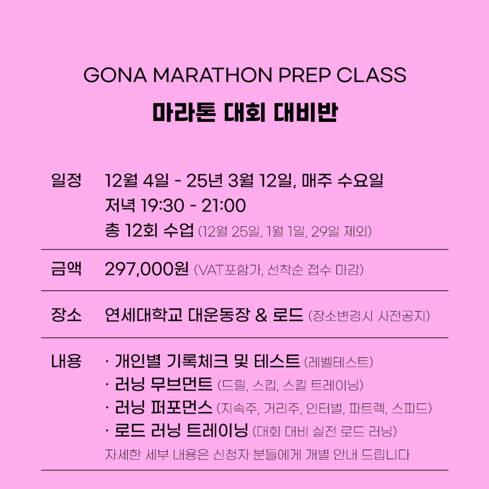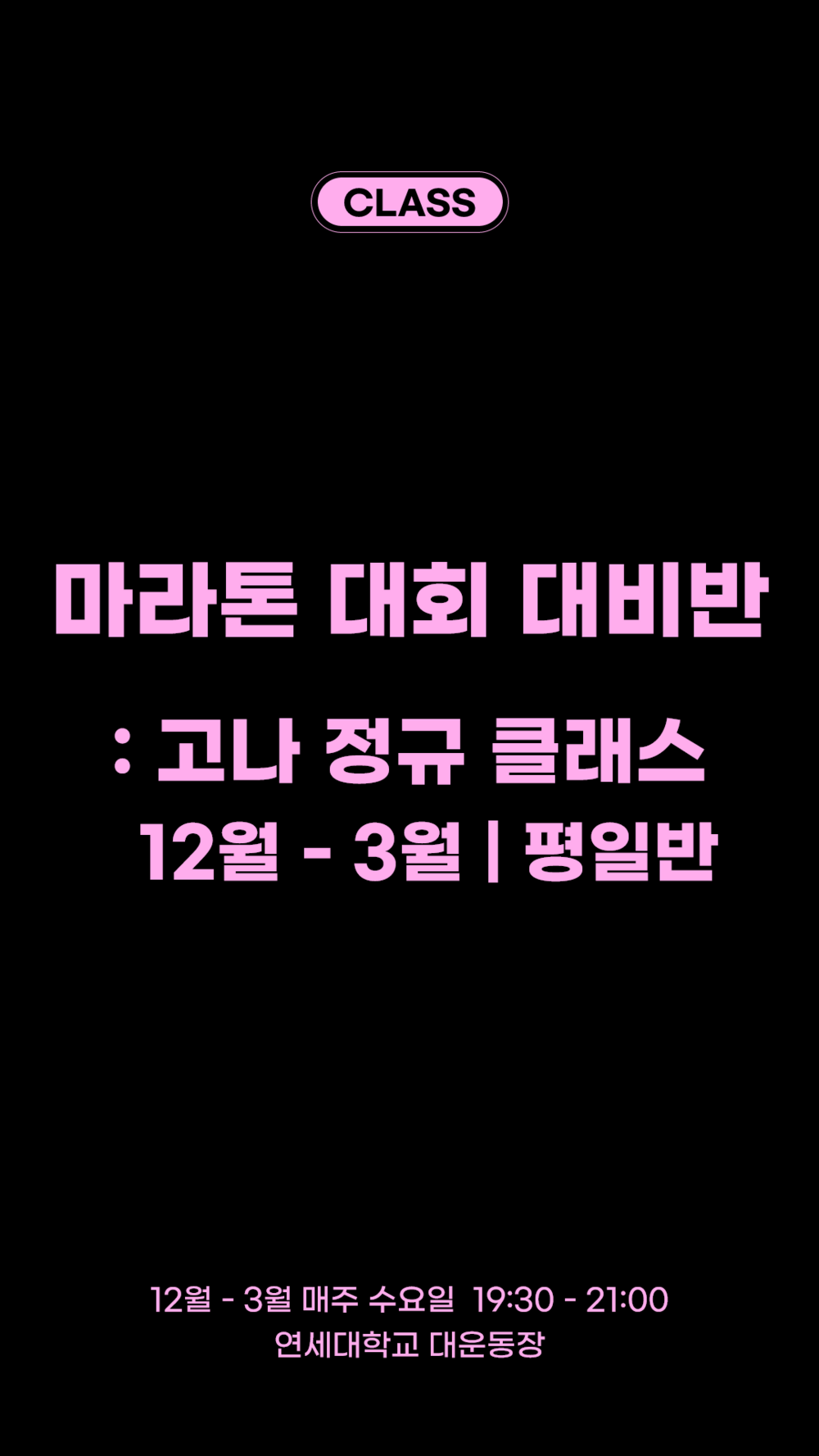 고나 마라톤 대비반 (12월~3월 정규클래스/ 연대- 평일반)