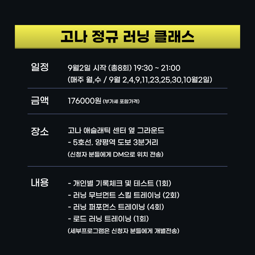 고나 정규 러닝 클래스 9월!!!