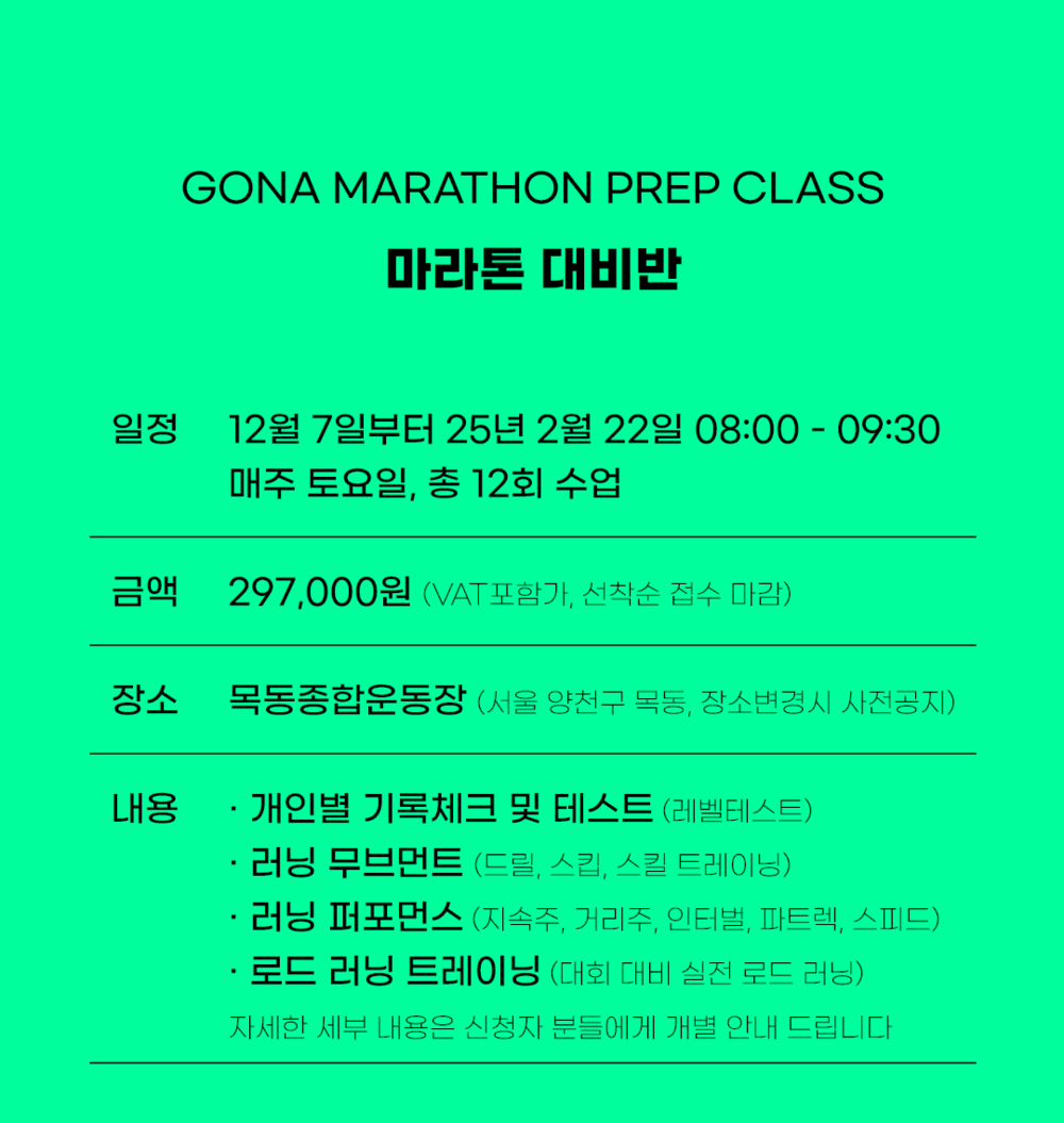 처음부터 끝까지 고나와 함께 하는 마라톤 대비반 클래스!
