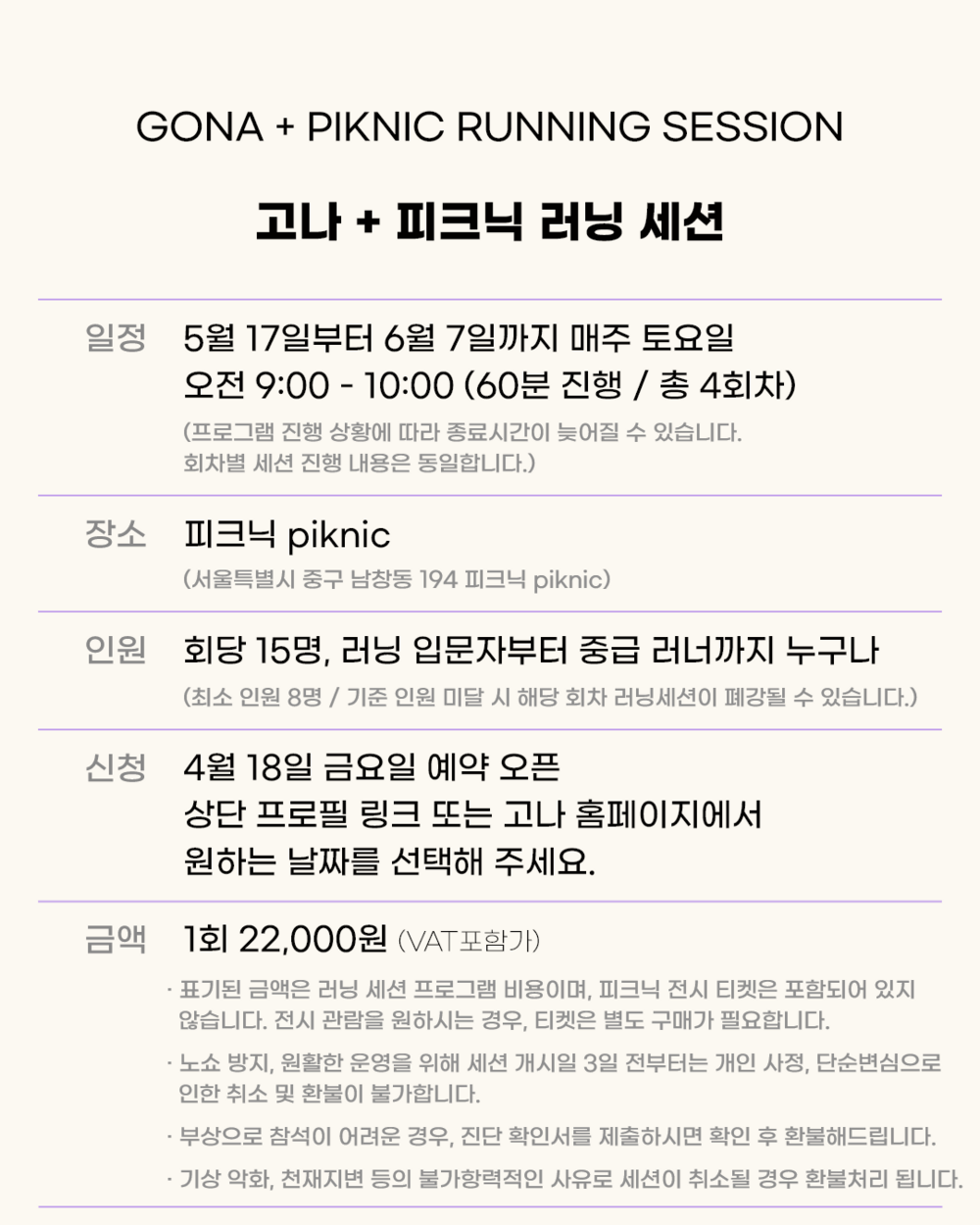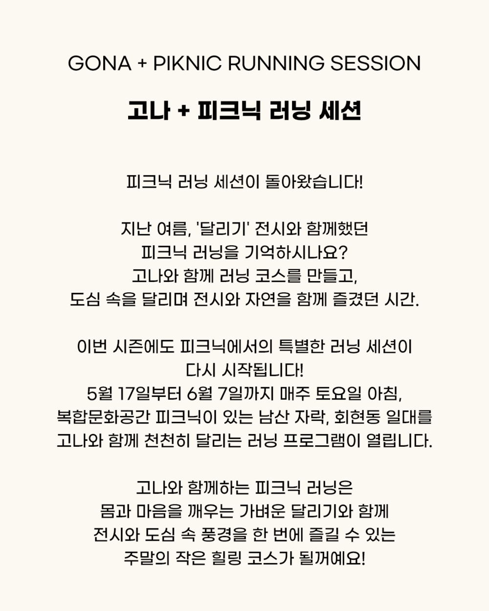 고나와 함께 천천히 달리는 러닝 프로그램이 열립니다.